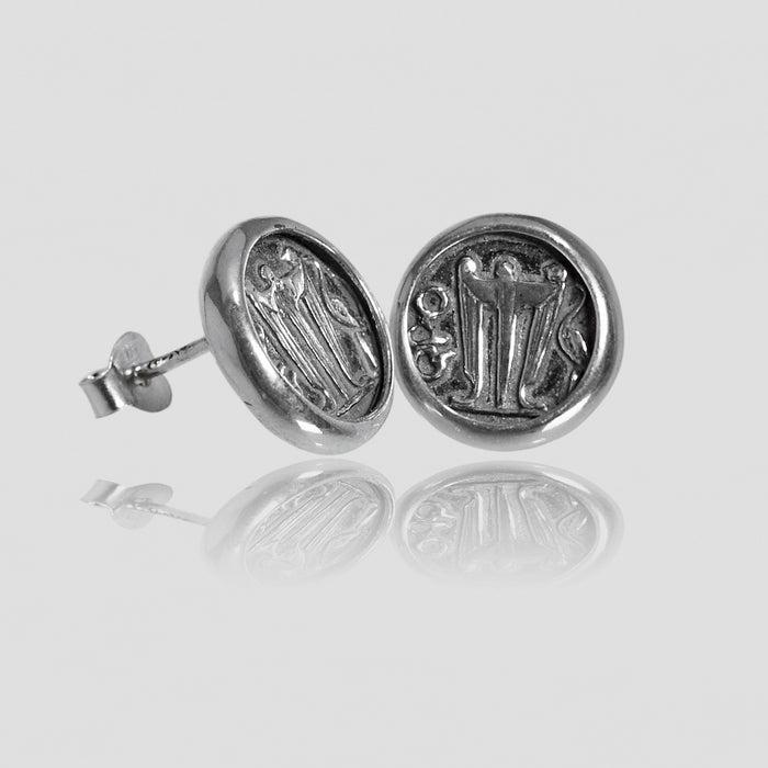 Orecchini della Linea Tesoro di Hera realizzati artigianalmente con riprodotta maschera apotropaica e quarzo idrotermale. Nell’antica cultura magno greca l’intensa...